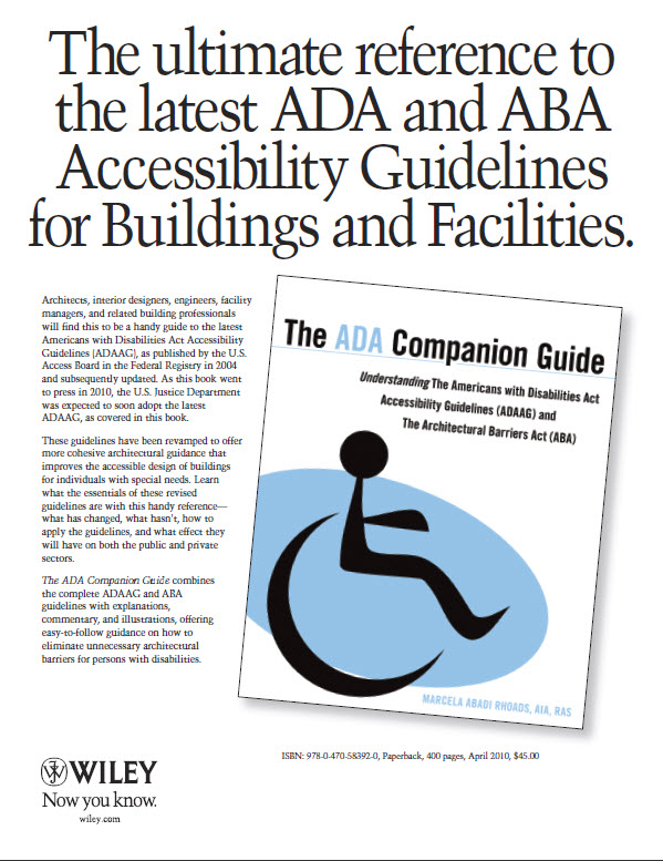 April: “The ADA Companion Guide: Understanding the 2004 ADAAG” was published by Wiley and Sons. It was my first book and a culmination of the work I’ve been doing for the past 8 years!