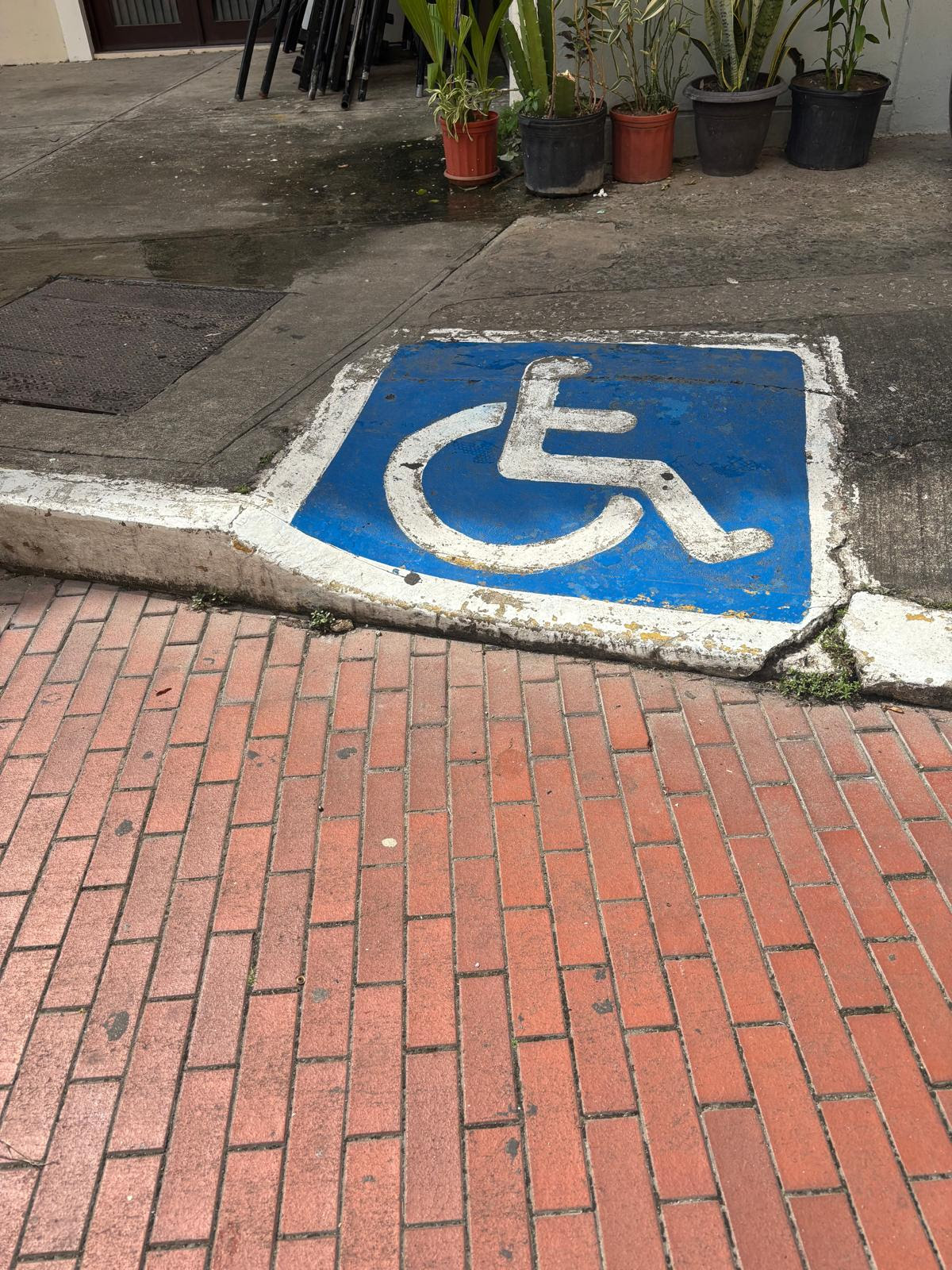 The curb ramp was located in the Old Part of Panama called Casco Viejo. It was a good attempt, although the change in level at the bottom of the ramp was higher than 1/4″ and makes it difficult for a person in a wheelchair to use it without assistance.