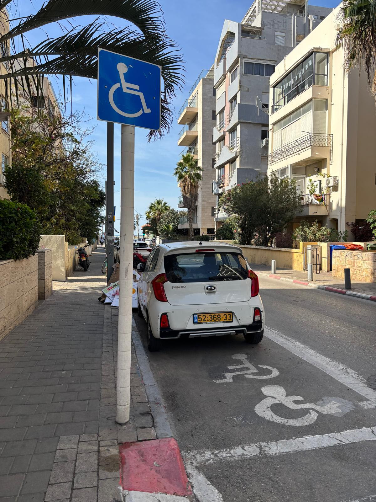 The parallel parking in Tel Aviv was a good attempt to designate the parking spaces, but it did not provide ample area to exit or to get onto the sidewalk