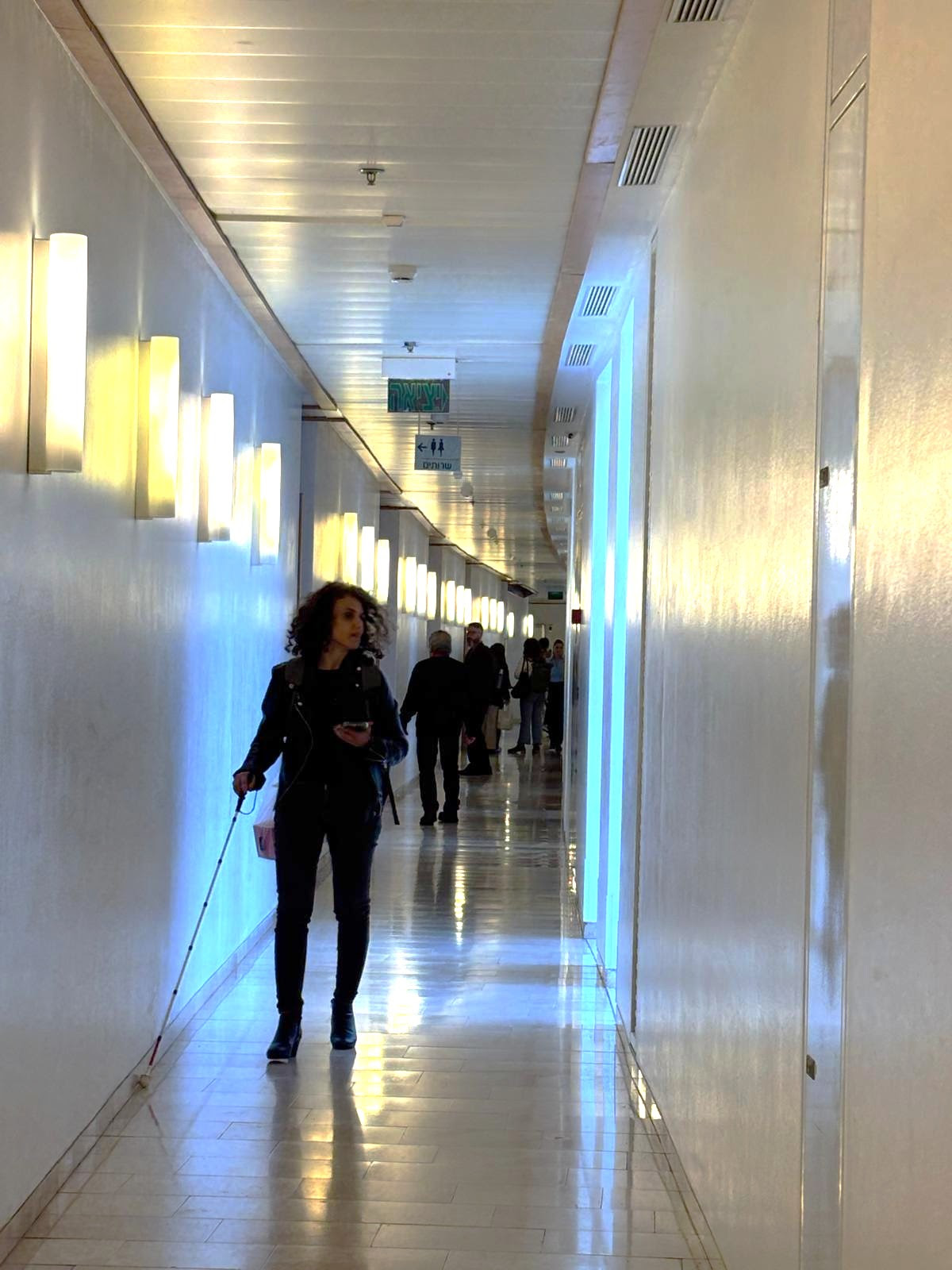 The sconces inside a corridor at a University in Herzeliah Israel were mounted higher than 80″ a.f.f. so that they would not be hazards to persons who use a white cane to find their way round.