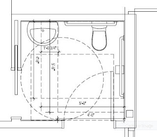 By the same token, door swings cannot overlap clear floor space of any fixtures or dressing rooms.