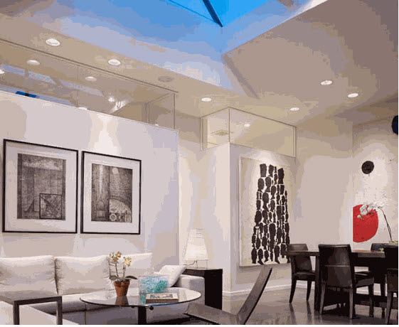 A storefront from the early 1900’s has been converted into a live / work space for a couple with an extensive art collection. Creating the modern equivalent of the traditional courtyard house, the new design is centered on a large skylight over the living and dining room. Inspired by a shipping container, a wood-clad service core houses the kitchen and powder room. A flexible and multi-functional space is facilitated by large pocket doors, steel plate blinders that hide the kitchen and concealed equipment that pivots out for use.