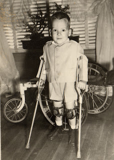 Here is Walter as a toddler with his crutches and wheelchair in the back