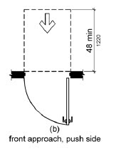 This figure gives guidance for a forward approach on the push side. This clearance applies to doors that are opened from the push side and on a forward approach. There is a second figure that provides more guidance about the push side approach