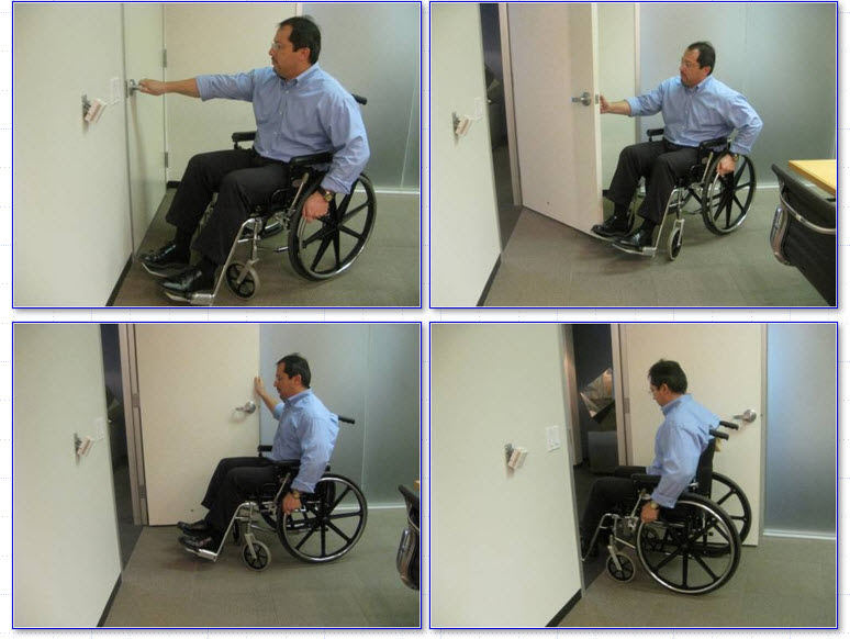 - Approach to the door (forward approach, hinge side approach and latch side approach)